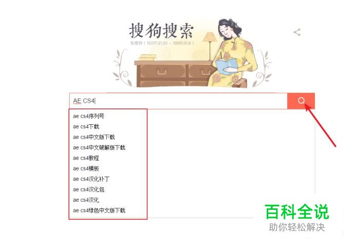 输入AE CS4关键字,搜狗搜索会帮你自动筛选你想找的内容。 可以点击关键字直接进行搜索,当然你也可以继续点击搜索按钮继续搜索!