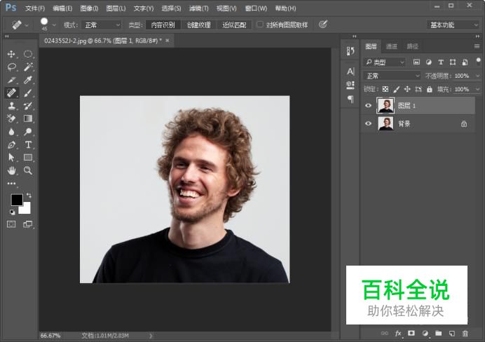 按ctrl+shift+u对图片进行去色处理,处理后图片会变为黑白。