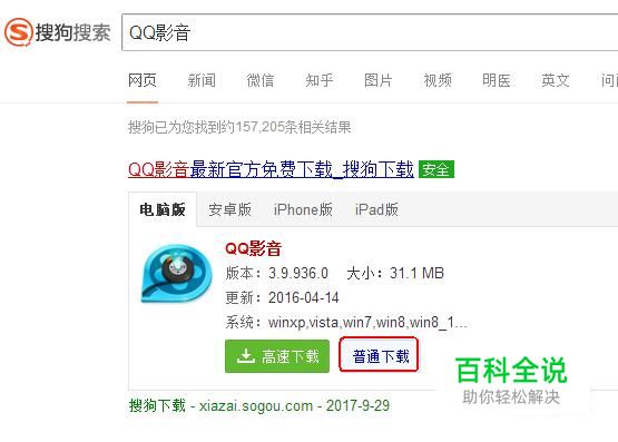 在搜狗下载中下载并安装QQ影音。