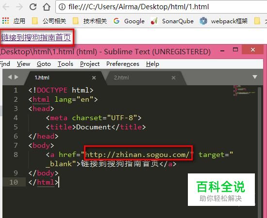 html<a>标签的语法:<a href="网址、链接地址" target="目标" title="说明">被链接内容</a>。href为相对路径或绝对路径或具体的网页URL地址。taget值可以省略,常用的有以下三种:_blank表示在新窗口中打开链接;_parent表示在父窗体中打开链接;_self在当前窗体打开链接,此为缺省值。target值为_blank时,我们点击超链接会在新的页面打开超链接的内容。步骤1中点击链接跳转到了搜狗指南首页,点击左侧的返回按钮即可返回链接所在的页面。_parent和_self则在原来的页面打开链接的页面,原来的页面不复存在。
