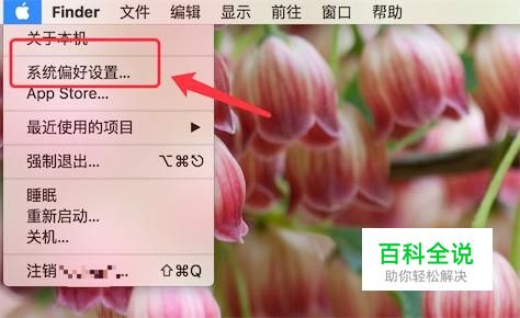 首先点击系统菜单栏上的苹果图标,在下拉菜单上点击‘系统偏好设置’