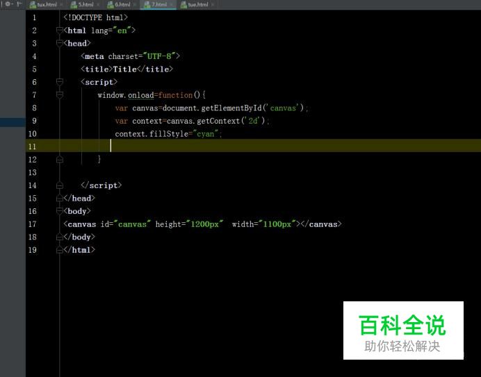 先在HTML5页面主体里面添加一个<canvas>标签,定义一张画布(大小,背景颜色)代码 在头部嵌入JS代码,并把画布加载到页当中去,代码如图