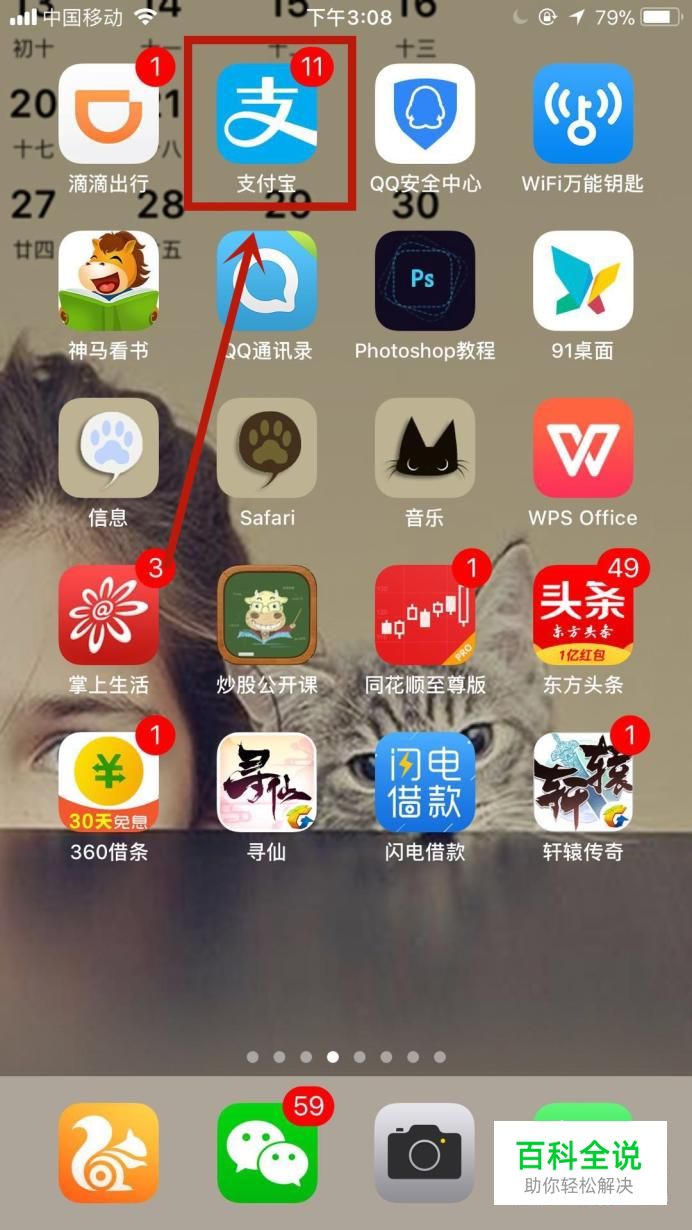 首先在桌面上找到支付宝手机APP图标并点击它,如下图所示。