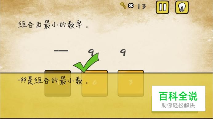 第十七关,组合出最小的数,333并不是最小的数,因为第一个下划线可以移动,移动之后就变成了-,所以-99才是最小的数。