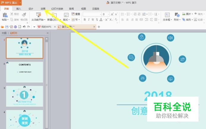 首先我们打开我们需要进行动画自定义的PPT文件,然后选择软件上部的 动画 选项