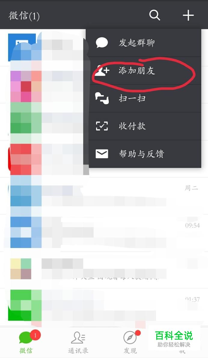 打开微信app,进入到任何一个界面,点右上角+处,选择“添加朋友”