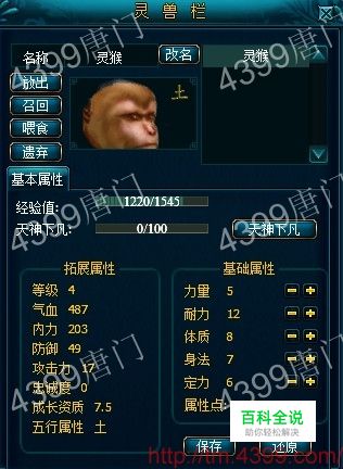 总之,选宝宝,选火宝宝,最好选择资质9-11这个档次的(12以上很难见),再看初始力量,同个档次下,初始越高,越有优势,至于你的宝宝练下去到底会有多少攻击,在资质没过12的情况下,还得看人品。看宝宝升级时,所给的随机加的那4-5点,5点几率出现大,攻击就高。4点几率出现大,攻击就低.......就这么简单。希望大家能在4399唐门中抓到好宝宝!