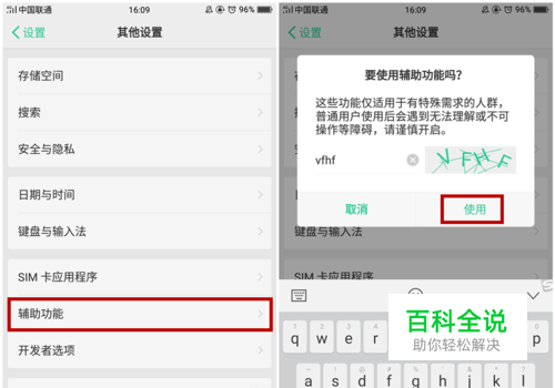 2、点击辅助功能--输入相应的验证码,点击“使用”。