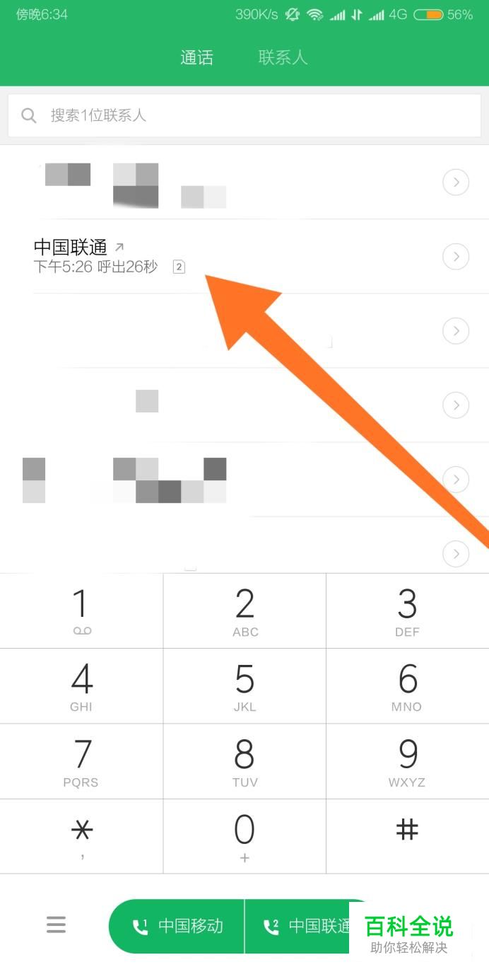在拨号界面随便选择一条通话记录,然后长按。