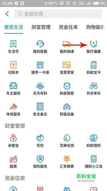 进入更多全部应用界面,在便民生活中点击“医疗健康”进入。