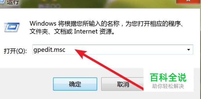然后输入命令‘ gpedit.msc’,点击确定按键。