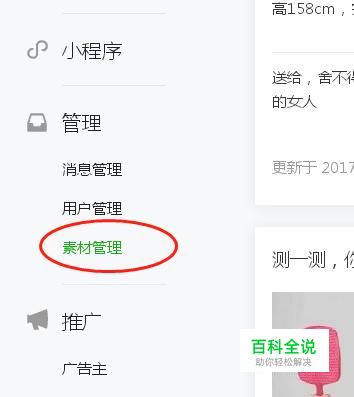 首先在电脑上登陆你的微信公众号,在首页找到“素材管理”,然后点击进去,在弹出的新菜单中点击“新建图文素材”,接着我们就进入编辑框中了。