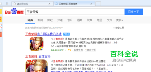 首先登陆网页,在搜索框内填写王者荣耀点击搜索,切换界面后点击官网进入。