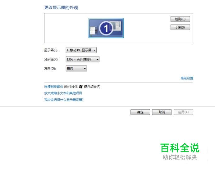 在屏幕分辨率中找到“方向”选项,选择“横向”并点击“确定”