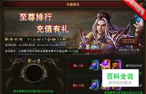 游戏中,凡是8.5-8.6两日之内,只需玩家达到最低要求,即充值5000元宝即可领取奖励,更有充值排行榜等君来上榜。这可是一个一夜成名的大好时机,并且,若是榜上有名还可领取额外的充值奖励呢!获得第一名的玩家,可领取一个灵石宝箱(金)、若干铜钱、经验丹和官印多选箱,但是需最低充值2w元宝哦。当然,凡是进去前三十名的玩家皆可榜上有名,领取额外的奖励唷。