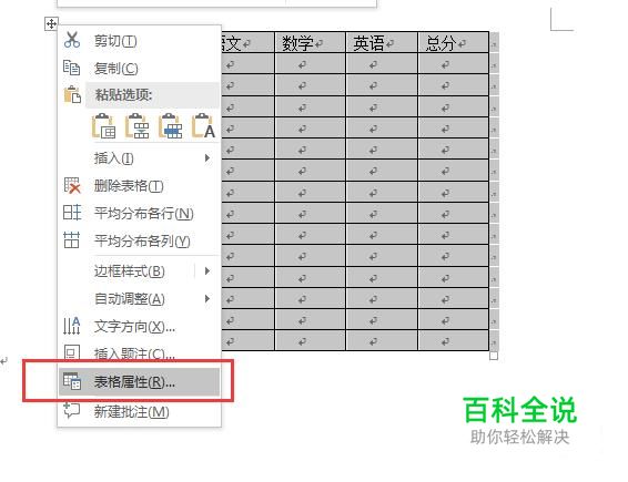 选中表格,点击鼠标右键,在弹出的界面中选择“表格属性”。