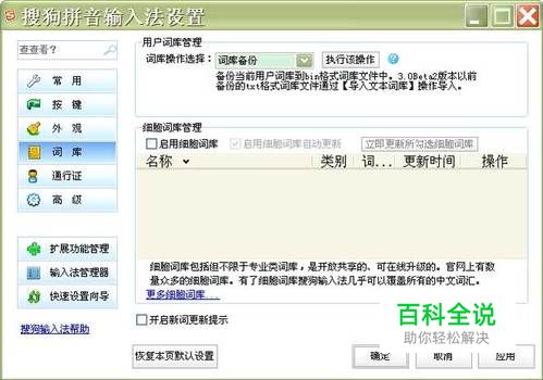 1、打开搜狗拼音输入法设置:去掉“启用细胞词库”与“开启新词更新提示”前面的√。