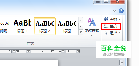 点击“开始”,然后在”编辑”组,找到“替换”按钮,如图