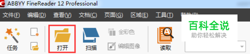 步骤一:打开ABBYY FineReader 12,在主工具栏上点击打开。