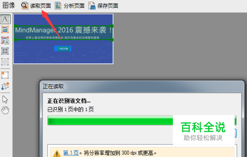 步骤三:打开图像文件之后,在工作区点击‘读取页面’按钮,等待ABBYY FineReader 12识别文档。