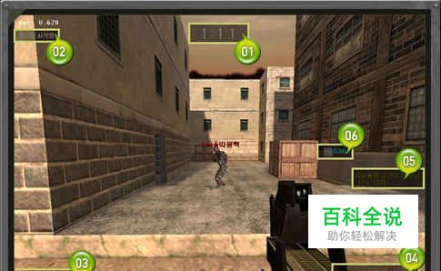 游戏开始时,会看到画面说明。位于中央有一个[准星],会随着枪支的特性扩大瞄准点的范围。
