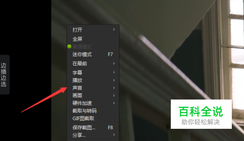 然后弹出的下拉的菜单中,可以看到下拉菜单中进行选择“声音”的选项。