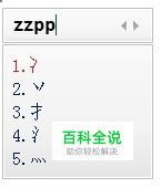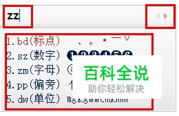 第一种,直接输入开头字母为“zz”。 在中文输入时,输入“zz”,可以看到QQ五笔输入法中会显示一个下拉框,如图: