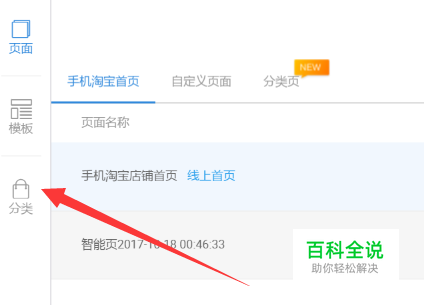 进入到店铺管理页面后,点击左侧的“分类”图标。
