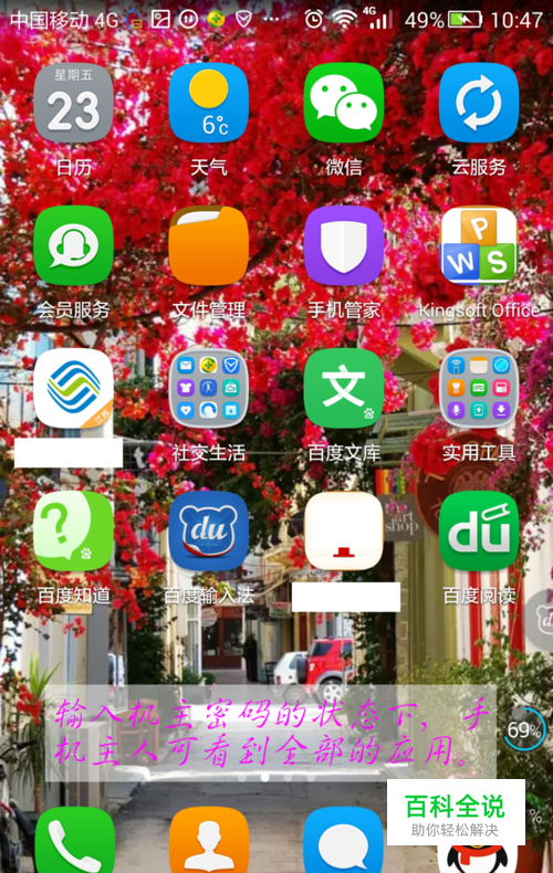 隐藏应用,显示绿色按钮的是已开启。在访客模式上打开手机,会隐藏部分的应用。有一部分属于系统应用是不可隐藏的。