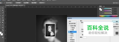 将之前隐藏的背景复制层显示,按住ctrl+t键调整图层大小,使之居中,然后我们双击图层缩略图,设置图层样式--描边。