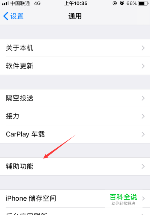 打开通用设置后,我们下滑页面可以看到辅助功能,我们点击打开它