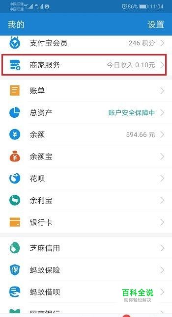 第一步打开支付宝,进去我的界面之后,点击商家服务,如下图所示: