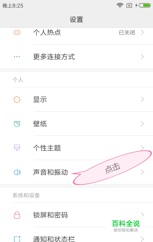 二:点击进入后,再找到“声音与振动”那一项,再点击进入