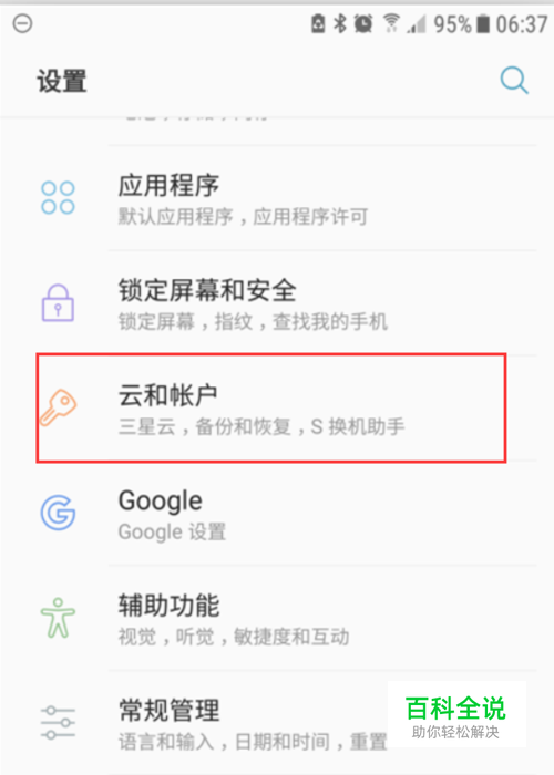 找到设置按钮,点击进入系统设置,如下图,我们可以看到【云和账号】