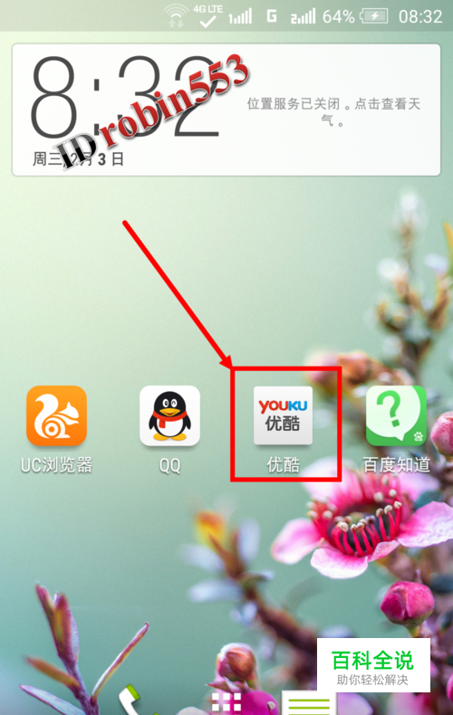 点击手机应用程序列表里的优酷图标, 打开优酷手机客户端。
