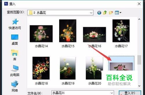 弹出置入对话框,找到喜欢的图片,点击置入按钮,置入到文档中。