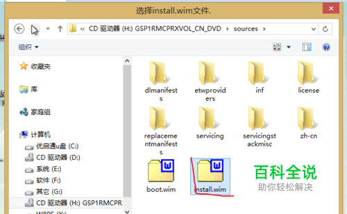 进去之后可以看到【install.wim】,选择它点击确定。