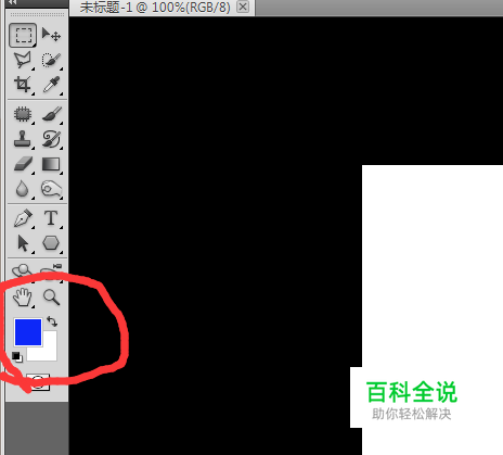 打开PS,在工具栏的下方就是前景色和背景色,如图,我的前景色是以前使用的蓝色。