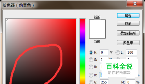 上面两个步骤都是讲快捷键,鼠标操作为:先在背景色(前景色)单击,就会弹出背景色(前景色)对话框,如下图,可以色图上大致选择颜色,鼠标箭头变成圆圈点击就是选取了。然后点击确定就好。