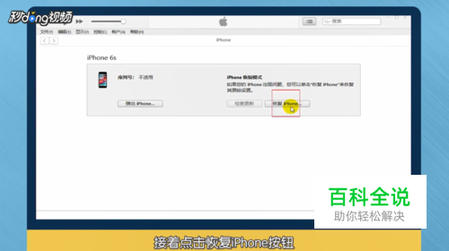 打开“iTunes”软件,链接“ios”设备,点击“恢复iPhone”按钮。
