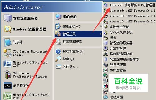 首先在开始菜单中,选择管理工具,点击Internet信息服务(IIS)管理器