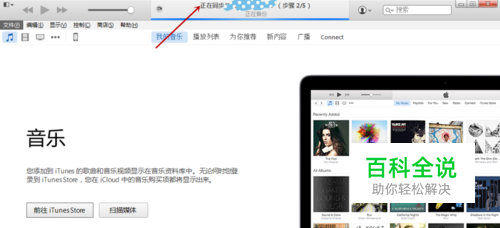 如图,使用数据线将手机连接到电脑时,打开iTunes后,软件就会对iPhone进行自动同步。