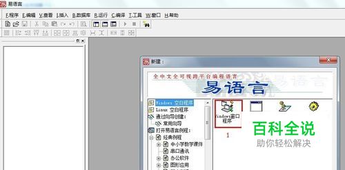 天空一声巨响,易语言闪亮登场。打开易语言主程序,弹出“新建对话框”,选择“Windows窗口程序”→“确定”,进入“Windows窗口程序”窗口设计界面。