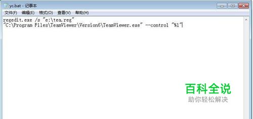 如果直接把这个文件放进启动菜单,那么系统开机的时候确实会自动执行该注册表,但是这个时候不会导入,而是弹出一个导入的对话框,如果是在本机操作,单击确定就可以了,但这时远程电脑已不受我控制了,所以,会在这一步卡住。怎么办?我突然想到regedit.exe命令有个参数 /s 。如果加上了这个参数,在导入注册表时不会有任何提示,直接导入。于是我在批处理文件中添加了一条语句,现在yc.bat的内容就变成了如下样子: regedit.exe /s "e:\tea.reg""C:\Program Files\TeamViewer\Version6\TeamViewer.exe" --control "%1" 第一行先导入注册表,第二行启动Teamviewer受控端。