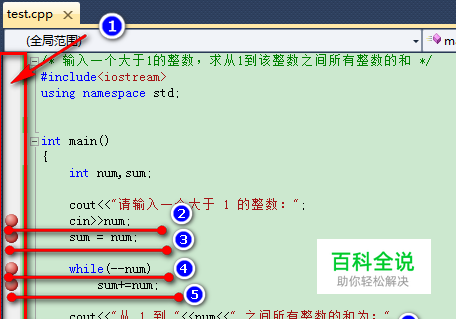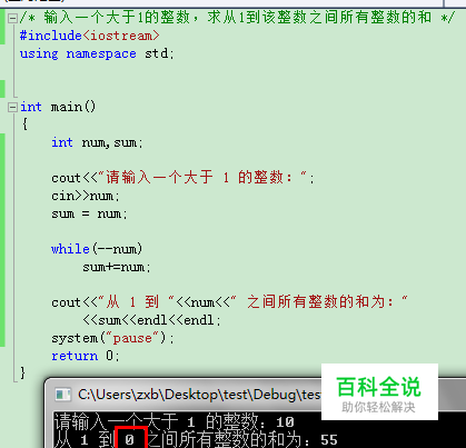我们用 VS 编写了一个求和的 C++ 源程序。编译时没有出现错误,却在运行时和我们的设想不同。