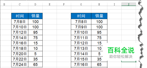 如图所示,大家可以看到两个表格中记录的对应日期的销量,但大家会发现,日期并是一致的,我们用传统的公式也相加是很麻烦的。怎么样操作呢?