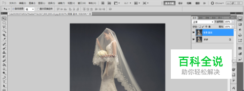 将通道转换成选区,并回到图层面板,项任务复制带一个新建的图层中去。 然后打开一张背景图,拖到婚纱图里去。