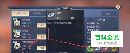 参加斗气阁,完成游戏挑战后就会获得一些银币。或者参加斗圣秘闻,打败秘闻守卫怪兽,就能获得大量的金币和银币啦。
