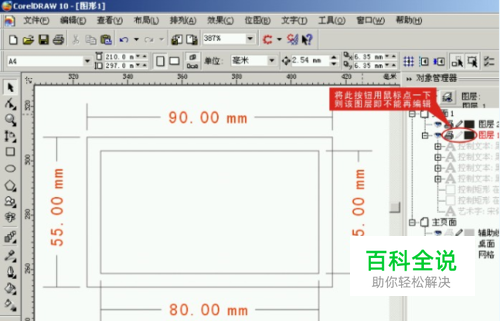为了编辑的方便,选择“窗口”“卷帘工具”“对象管理器”,点一下右边的小三角形,选择“新建图层”,这时在对象管理器的窗口中会多出一个图层2的项目出来。用鼠标选取图层1,将其前面的笔形按钮点一下,则该图层1即处于不可编辑状态