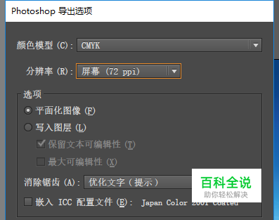【平面化图层】就是保存的PSD文档打开后只有一个图层图片。【写入图层】就是可以保存成多个图层的,后期可以编辑。